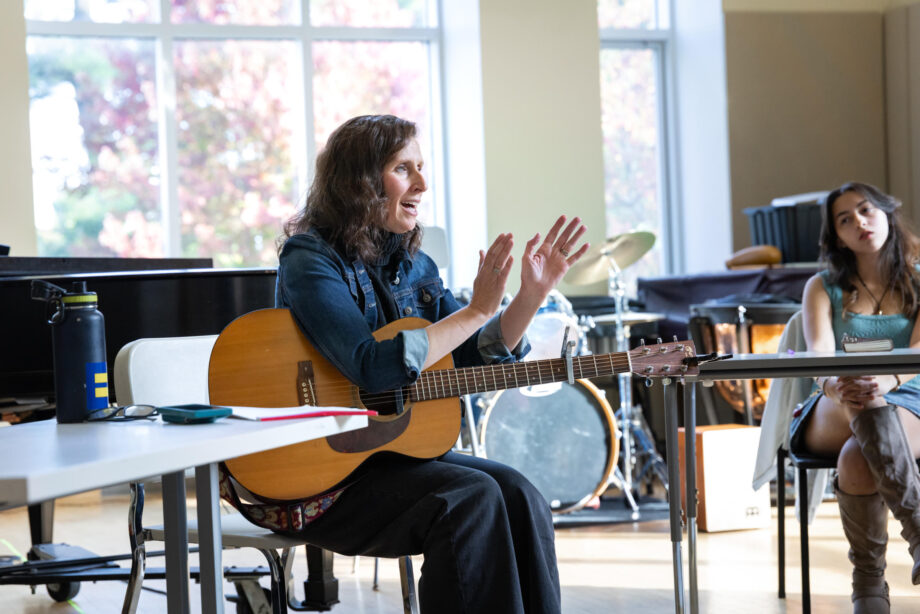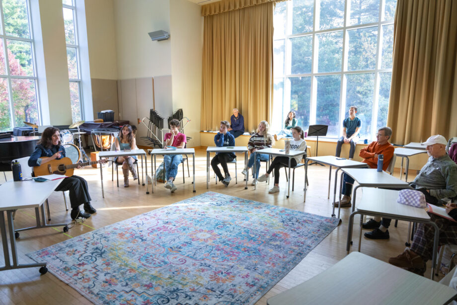 Singer-songwriter Edie Carey ’92, daughter of former English teacher Tim Carey, was delighted to return to campus and spend time doing what she loves, in the place—and with the people—where she first discovered her passion for singing. Carey led a lively songwriting workshop with a small group of students, faculty, and staff.